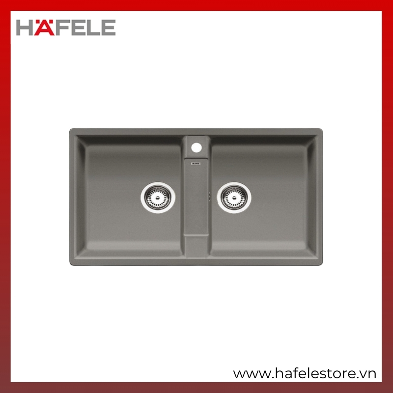Chậu Đá Blancozia 9 Màu Xám Jasmine Hafele 567.68.949 – Thiết Kế 2 Hố Chậu Bằng Nhau, Sang Trọng Và Tiện Dụng