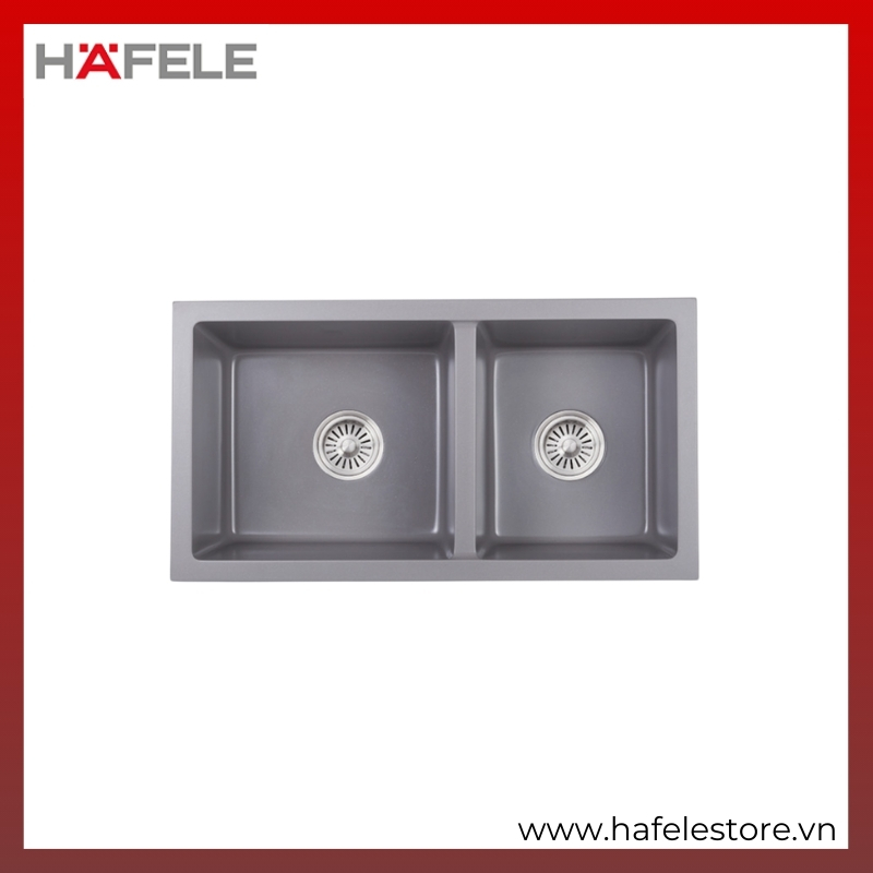 Chậu Đá HS22-GEN2S90 Häfele 577.25.510 – Chậu Đôi Granstone Màu Xám Hiện Đại, Bền Bỉ Chuẩn Đức
