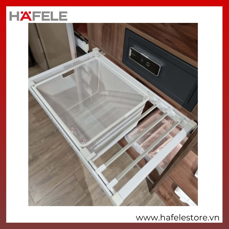 Móc Treo Quần Có Rổ 800mm Hafele 807.95.831 – Phụ Kiện Khung Kéo Cao Cấp Cho Tủ Quần Áo Hiện Đại