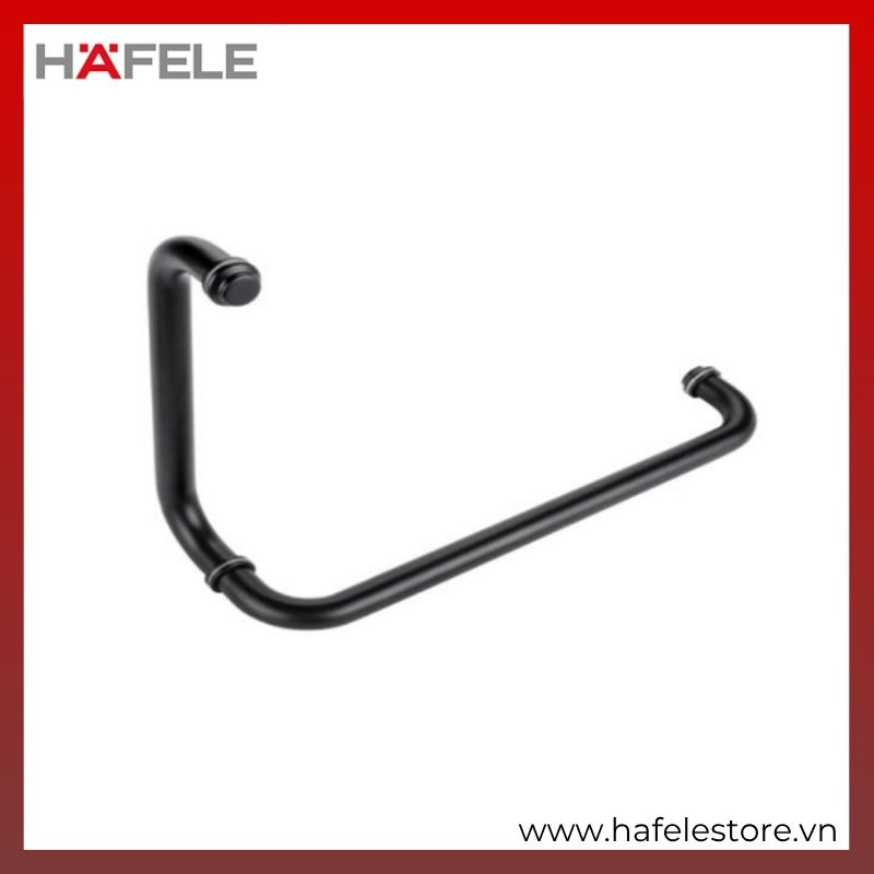 Tay nắm phòng tắm kính CC 275×425mm Hafele 903.04.153 – Tay nắm inox đen mờ cao cấp, hiện đại cho cửa phòng tắm kính