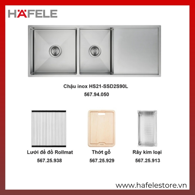 Trọn Bộ Chậu Rửa Inox Workstation HS21-SSD2S90L & Phụ Kiện Đồng Bộ Häfele | Mã 567.94.059