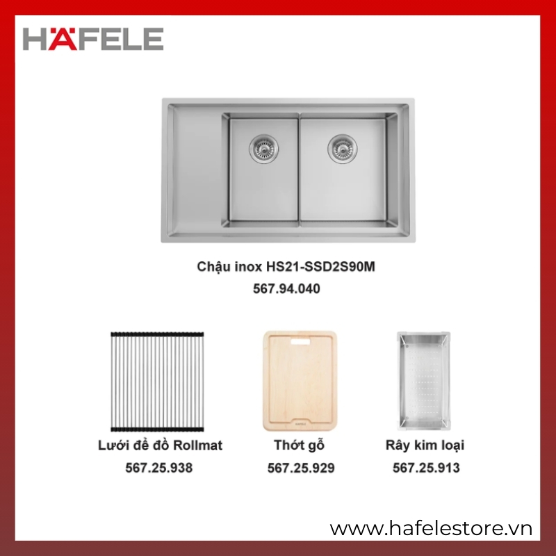 Trọn Bộ Chậu Rửa Inox HS21-SSD2S90M & Phụ Kiện Đồng Bộ Häfele | Mã 567.94.049