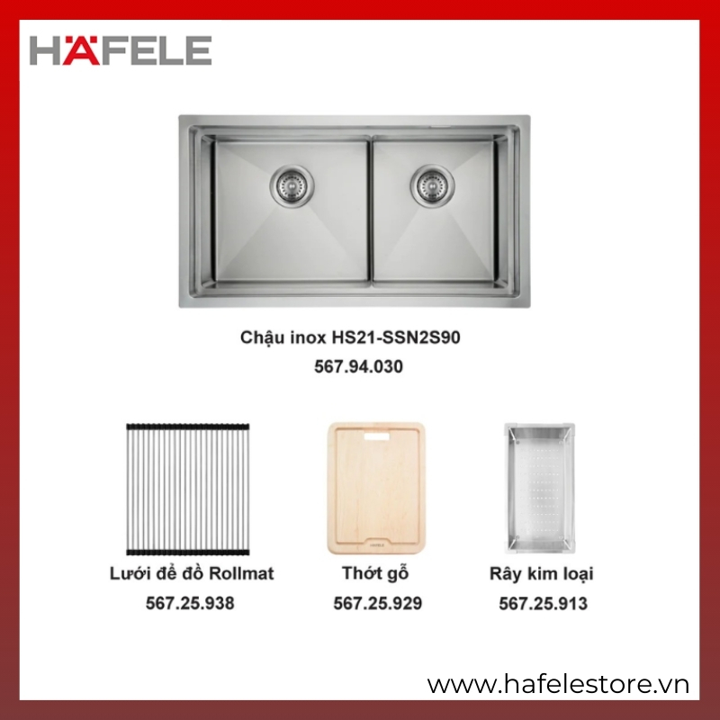 Trọn Bộ Chậu Rửa Inox Workstation HS21-SSN2S90 & Phụ Kiện Häfele | Mã 567.94.039